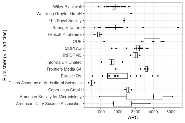 The new data also contained additional cost information for 1 publication. The following plot shows the distribution between APCs and additional costs for this article: